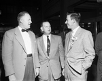 Luther Thurman, left, assistant vice president of City National Bank of Wichita Falls and Carl Spence, center, vice president of San Angelo National Bank, tell Ellis H. Boyd Jr., assistant vice president of First National Bank of Fort Worth that there's nothing in the business situation to cause serious concern. All were for the District 7 meeting of the Texas Bankers Association. Published in Fort Worth Star-Telegram evening edition February 21, 1954.