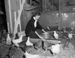 Ranch and Farm on 4-H work at Kennedale. Maxine Branes of the girls' county-wide 4-H Club feeds her fryers at her home near Arlington.