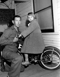 Hooks Blanton of the Fort Worth Emergency Corps, one of the hundreds of persons who counted an all-night search for 9-year-old Lina Ann Baumgardner, is shown here minutes after the child was returned home by a school bus driver. Published in Fort Worth Star-Telegram evening edition February 23, 1954.