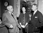 Business was not as good as it was at the top of the boom, but we're doing all right in Howard County. Said Ira L. Thurman, left, vice president and cashier of the First national Bank of Big Spring as he talked to Joe A. Clarke, vice president of the Fort Worth National Bank prior to the annual meeting of District 7 of the Texas Bankers Association, which opened at Hotel Texas. Mrs. Thurman was an interested listener. Published in Fort Worth Star-Telegram evening edition February 22, 1954.