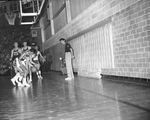 Crozier Tech's Carlos Montemayor (20) and Paschal's John Claunch fight for the ball in Wednesday night's game. Standing in a line behind are Bethel Elledge (25) and A. C. Black of Crozier Tech and Don Simmons (16) of Paschal. Published in Fort Worth Star-Telegram evening February 25, 1954.