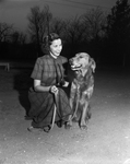 Willie Jay, a Golden Retriever, posed here with his owner, Mrs. Betty Henry, will be in the Fort Worth Kennel Club's all-breeds dog show. The dog is obedience trained and also will appear in the obedience trials of the Fort Worth Dog Training Club. Published in Fort Worth Star-Telegram evening edition February 24, 1954.