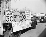 The Wise County Cooperation of REA entered this float as one of 25 in Decatur's safety parade. Bands, school children, and civic groups participated in the parade along with the floats. Approximately 1,000 Decatur citizens watched the parade. Published in Fort Worth Star-Telegram evening edition February 24, 1954.