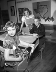 Three third grade students at W. J. Turner Elementary School show invitations they made inviting their parents and friends to visit their school during Public Schools Week. Left to right, Cynthia Drexel, Barbara Campbell, and Kenneth Boyd. Published in Fort Worth Star-Telegram evening edition February 26, 1954.