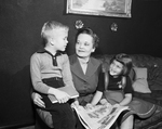 Seven-year-old Rickey Blanton is making sure that his grandmother, Mrs. C. A. Blanton, will visit his second grade room at Mary Louise Phillips Elementary. And Rickey points out pictures of other schools for his five-year-old sister, Cindy Ann Blanton. The youngster won't be satisfied until his parents, Mr. and Mrs. John Blanton also visit Phillips during Public Schools Week. Published in Fort Worth Star-Telegram evening edition February 28, 1954.