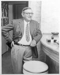 Clint Murchison, Dallas oil man. He can be seen leaning against a table with his left hand and his right on his hip.