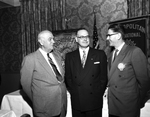 Russell W. Gunn of Kansas City, Missouri, center, International president of the Cosmopolitan Club, met with Fort Worth club officers. With him are Mack Treece, left, president-elect, and Wendell F. Hammarley, retiring president of the local group. Published in Fort Worth Star-Telegram morning edition March 3, 1954.