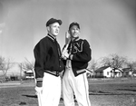 North Side Outfielders Tommy Cantrell, left, and Ken Hogan, regulars on the 1953 team, are back this year and gunning for the 2A-5 batting title. Both are good defensive hands, capable batsmen. Published in Fort Worth Star-Telegram morning edition February 28, 1954.