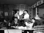 Photographed at one of the weekly sewing sessions of the Provarsu Study Club, for which members provided all supplies, are, left to right, seated, Madames, J. Morton Westbrook and J. T. Inman, and standing, Madames, Bill C. Kendrick and Paul Allison, in whose home the group meets. Published in Fort Worth Star-Telegram evening edition March 10, 1954.