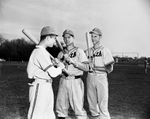 When Poly opens defense of 2A-5 baseball championship, the three players probably will be in the outfield. Left to right, Randy Reynolds, I. B. Childs and Robert Groom. Childs made all-state tournament team previously. Published in Fort Worth Star-Telegram evening edition March 15, 1954.