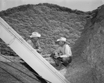 Ranch and Farm Magazine on the Charlie Porter farm in Baylor County. Silage is the topic here as Charlie Porter, right, Baylor County rancher, and his county agent, R. L. McClung, check one of Porter's large trench silos. Published in Fort Worth Star-Telegram morning edition July, 1954