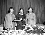 Here for a session of home economists are, left to right, Miss Mary Evans, president of the Texas Home Economics Association; Dr. Sylvia Cover, president of the Texas State Nutrition Council, and Miss Anna Bines, leader of the Tarrant County home economics. Published in Fort Worth Star-Telegram morning edition March 12, 1954.