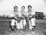 Doing most of the pitching for Tech in the high school baseball race will be Right-Hander Bobby Mayfield, Catcher Alex Hoover and Southpaw Tom Gonzales, left to right. Published in Fort Worth Star-Telegram evening edition March 10, 1954.