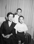 Mrs. R. W. Strong and sons, Peter, front, and Michael, and her husband here last week en route to their home in Alexandria, Virginia, after a "round the world" trip. They visited Mrs. Strong's mother, Mrs. A. H. Priest, 2500 Primrose. Published in Fort Worth Star-Telegram morning edition March 14, 1954.