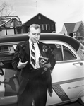 Al Kilgore of 3327 S. University Dr. carried his Manchester dogs, Susy and Prissy, to safety Monday when he came home and found the house on fire and the pets gagging from smoke. Published in Fort Worth Star-Telegram morning edition March 15, 1954.
