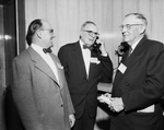 Telephone men depend on telephones, too. Left to right, Warren B. Clay, U.S. Independent Telephone Association president, J. B. Haley, executive secretary, Texas Telephone Association, and W. G. Winters, TTA president, get an assist from a telephone at Hotel Texas, where the TTA convention opened Monday. Published in Fort Worth Star-Telegram morning edition March 15, 1954.
