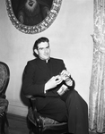 Bust shot of Reverend Claude Smyth with shamrocks from his homeland. Published in Fort Worth Star-Telegram morning edition March 15, 1954.