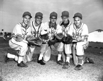 Helping Amon Carter Riverside High's baseball team keep rolling are, left to right, Second Baseman Bob McVec, Shortstop Dave Cox, Third Baseman Jack Fikes, First Baseman LeRoy Quick, Second Baseman Buck Harris. Published in Fort Worth Star-Telegram evening edition March 23, 1954.