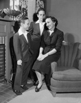 Mrs. Robert M. Doby, 3613 White Settlement Rd., recently elected president of the Roundelay Club, is pictured with her sons, Roy Weir, left, and Robert Jr., right. Published in Fort Worth Star-Telegram morning edition March 17, 1954.