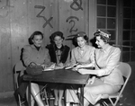 Four members of the Junior Woman's Club, planning a spring fiesta to be given at Pioneer Palace, are left to right, Mmes. Paul Allison, director, Ray Norman, president, Robert C. Haltom, chairman of ways and means, and George Patten Jr., dance chairman. Published in Fort Worth Star-Telegram morning edition March 18, 1954.