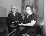 Mrs. B. A. Wiedeman, left, is general chairman for a meeting of the Texas State Chapter, PEO, April 20-22 at Hotel Texas. Mrs. W. M. Wood of Houston, right, is state president. Published in Fort Worth Star-Telegram morning edition April 12, 1954.