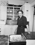 Mrs. Rhoda Bodycoat, city sanitarian, inspects an automatic dishwasher in a care home kitchen, a recommended item. Published in Fort Worth Star-Telegram morning edition March 28, 1954