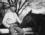 W. H. Irvine shown with Flag, his Tennessee walking horse, on his ranch near Cresson, Texas. Published in Fort Worth Star-Telegram evening edition March 27, 1954