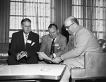 Looking over the program for the 24th annual Southwestern Sales Executive Conference were, left to right, Sid Austin, president of the Albuquerque Sales Executive Club, James P. Bass, district director for South Texas for National Sales Executive Association, and Travis Young of Fort Worth, general chairman for the meeting here. Published in Fort Worth Star-Telegram morning edition March 25, 1954.