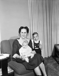 Mrs. W. T. Bridges was recently elected president of the Lady Elks. She is shown here with her two grandchildren, Jayla, three months, and Blair, 2, children of Mr. and Mrs. R. E. Cunningham. Published in Fort Worth Star-Telegram evening edition March 30, 1954
