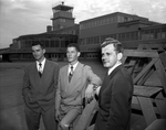 A group of transportation students from the University of Texas spent two hours inspecting facilities at Carter Field. Students shown discussing the control tower are, left to right, Keith Allan of Dallas, Eugene Kahanek of Kingsville and Buddy Rowe of New Boston. Published in Fort Worth Star-Telegram morning edition March 31, 1954