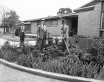 A resident of the W. H. Grove home takes care of a rose bed, while fellow residents Joe Harris, left, and Tom Holmes watch. Published in Fort Worth Star-Telegram morning edition April 4, 1954