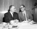 Richard L. Bowditch, left, president of the U.S. Chamber of Commerce, and Charles E. Nash, president of the Fort Worth chamber, compare notes during a luncheon at Hotel Texas. Bowditch was principal speaker at the chamber luncheon, kicking off Fort Worth's annual observation of Industrial Week. Published in Fort Worth Star-Telegram morning edition April 1, 1954