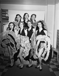 Girls who will perform a can can dance at Amon Carter Riverside High School's "Follies of '54" night at the school auditorium are, left to right, front row, Beverly Ward, Beverly Fike, Jo Ann Thornton and Martha McBride; back row, Wanda Blevins, Sue Shugart and Gail Willeford. Published in Fort Worth Star-Telegram evening edition April 1, 1954