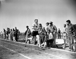 North Side's Warren Boling anchors his home team in front to win the sprint medley at the North Texas Relays in Denton. Published in Fort Worth Star-Telegram morning edition April 1, 1954.