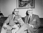I. Wayne Keller, left, president of the National Association of Cost Accountants, and A. B. Gunnarson, executive secretary of the association, look over the program for the Southwestern Regional Cost Conference at Hotel Texas. Published in Fort Worth Star-Telegram evening edition April 1, 1954