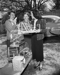 Getting ready to take 12 birds and cages to children's homes and hospitals here are, left to right, Mrs. Clovis Keahey, Mrs. O. G. Oliver and Mrs. Elmo O'Brien. Mrs. Oliver headed a committee from the Fort Worth Bird Club to give the birds to the institutions. Published in Fort Worth Star-Telegram morning edition April 4, 1954