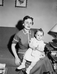 Mrs. Van E. Hall shown with her 14-month-old daughter Sandra Jeanne. Mrs. Hall will be installed as president of the Literature Section of the Junior Woman's Club at their April 27 luncheon. Published in Fort Worth Star-Telegram morning edition April 8, 1954