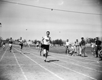 Jimmy Weaver, of North Side High, setting a new record in running track. Published in Fort Worth Star-Telegram evening edition April 3, 1954.