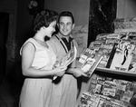 Vic Marasco and Mrs. Marasco selecting magazines in a hotel lobby after arriving in Fort Worth. Published in Fort Worth Star-Telegram morning edition April 6, 1954