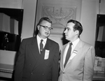 Two of the top officers of the West Texas County Judges and Commissioners Association opened the convention in Fort Worth at Hotel Texas. They are County Judge Howard Mays of Montague, left, president, and County Judge Dale Harbin of Erath, secretary-treasurer. Published in Fort Worth Star-Telegram evening edition April 5, 1954