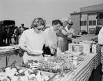 June Allyson, left, and her secretary, Barbara Salisbury, get in line for lunch during filming of "Strategic Air Command" at Carswell Air Force Base. Published in Fort Worth Star-Telegram evening edition April 7, 1954
