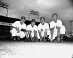 Starters for Cats in Texas League opener at Houston will include, left to right, Al Leap, 3b; Mike Korcheck, ss; Walter Fiala, 2b, and Danny Ozark, 1b. Ozark is holdover. Published in Fort Worth Star-Telegram evening edition April 8, 1954.