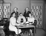 Mrs. Robert Turley, seated, left, is chairman of arrangements for the animal style show and games tournament to be given by Saint Patrick's Club at River Crest County Club. Other members of her committee are, left to right, seated, Mrs.'s. Maurice Egan, Leonard Davidson, and standing, Mrs.'s. W. P. Henley and Frank Jay. Published in Fort Worth Star-Telegram evening edition April 15, 1954.