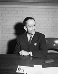 Charles A. Stewart, shown sitting behind a desk. Published in Fort Worth Star-Telegram morning edition April 9, 1954