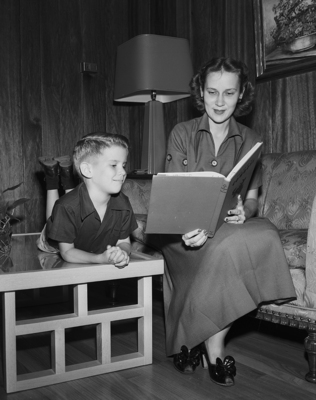 Mrs. L. C. Strange, 3700 Wellington, was installed recently as president of the Muarda Club. She is pictured here with her son, Mike, 6. Published in Fort Worth Star-Telegram morning edition May 24, 1950.