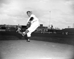 Cats' Glenn Mickens takes Aim. Mickens will face Beaumont in first home game. Published in Fort Worth Star-Telegram evening edition April 13, 1954.