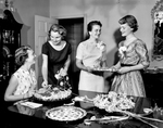 Here it is shown Susan Comer, Claudette Maersch, Dana Haltom and Suzanne Shugart at a table with food. Published in Fort Worth Star-Telegram morning edition May 16, 1954.