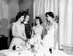 Four girls, left to right, Misses Emily Sanders, Nancy Clarke, Barbara Rogers and Sue Paschall, were hostesses recently at a party honoring four of the season's high school graduates Misses Sue Guffey, Patsy Paschall, Helen DeWitt and Joan Van Orden at the home of Miss Clarke, 1412 Washington Ter. Published in Fort Worth Star-Telegram morning edition May 13, 1954.