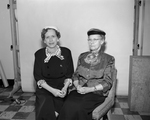 Mrs. James Harper, left, and Mrs. R. M. Bucy are two members of the hospitality committee for the entertainment of wives of members of the Lumberman's Association of Texas, now in convention in Fort Worth. Published in Fort Worth Star-Telegram evening edition April 12, 1954.