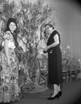 Miss Mollie Stuart, left in "Chiapenecas" costume, and Miss Olyve Gray, master of ceremonies for the Pan American observance of the Etta Newby Club Open Forum Section, are pictured with the "orchid tree", which was a feature of decorations for the Pan-American tea at the Woman's Club. Published in Fort Worth Star-Telegram morning edition 14, 1954.